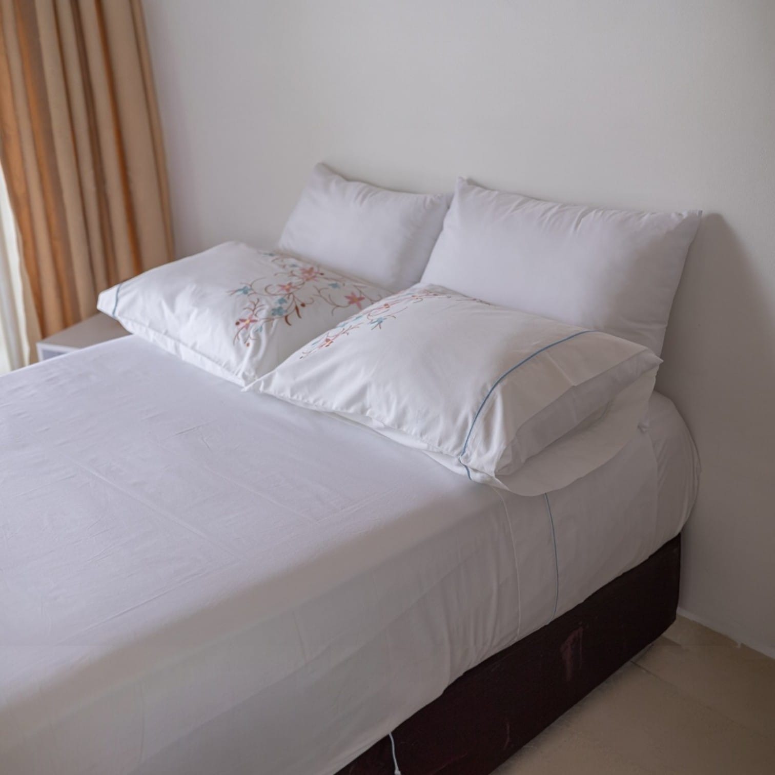 La verdadera calidad se siente en el peso y la caída de la tela. Este set de cama blanco destaca por su construcción en puro algodón, una fibra natural hipoalergénica que cuida tu piel mientras duermes. La precisión del bordado y el refuerzo del embone en fundas y sobre sábana no son solo estéticos; son el sello de una confección robusta diseñada para no deformarse, brindándote la frescura de un hotel de lujo en la comodidad de tu propia habitación.