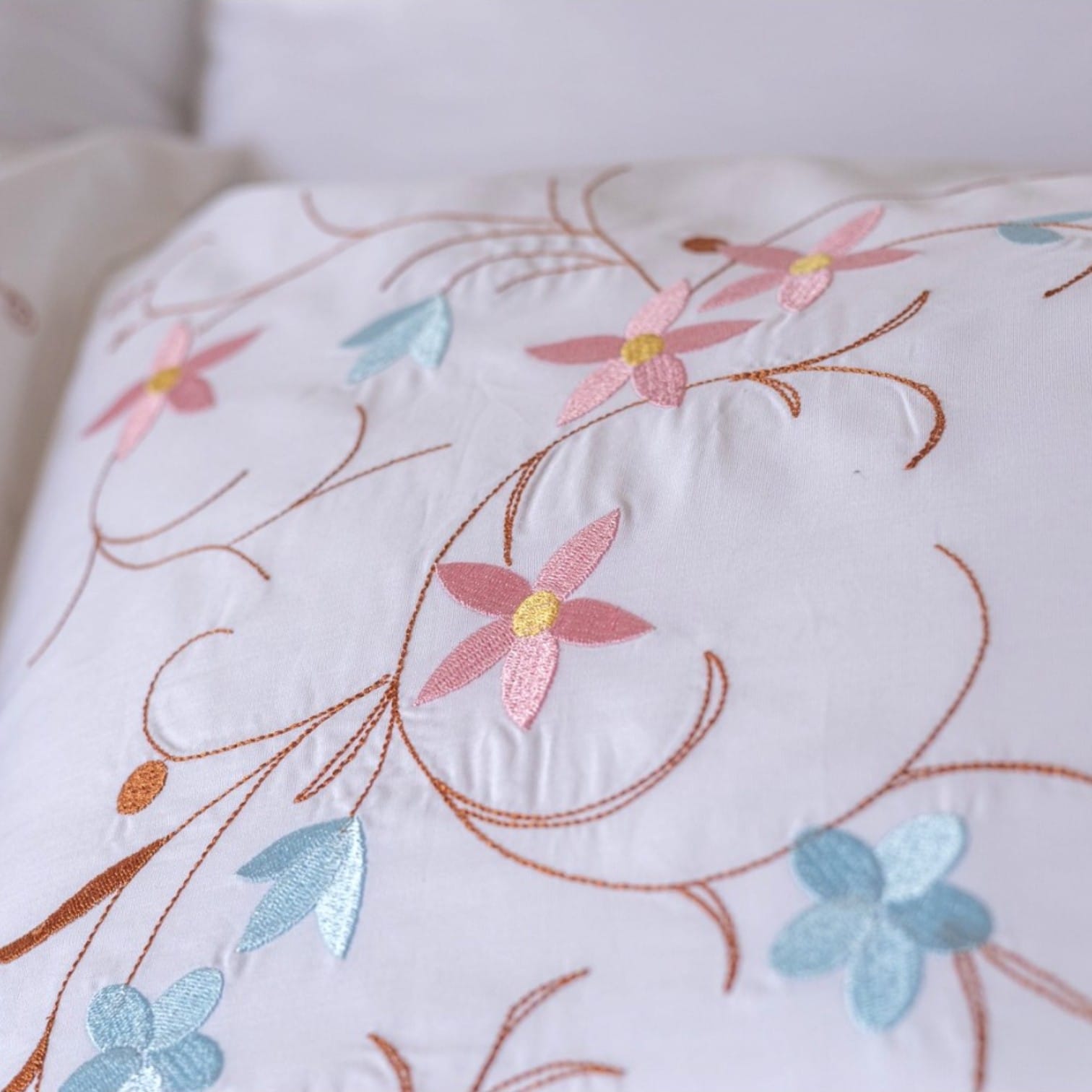 Juego De Cama Blanco 100% Algodón – Bordado «Árbol De Flores»