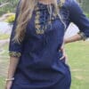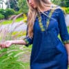 Elegancia bohemia: el encanto del bordado hindú en un favorecedor tono índigo.